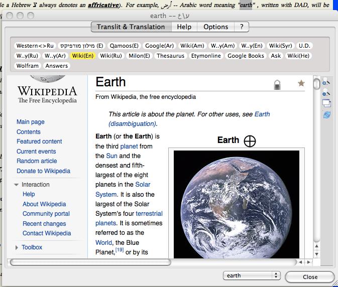 advanced support of Semitic languages. It looks simultaneously for a selected text